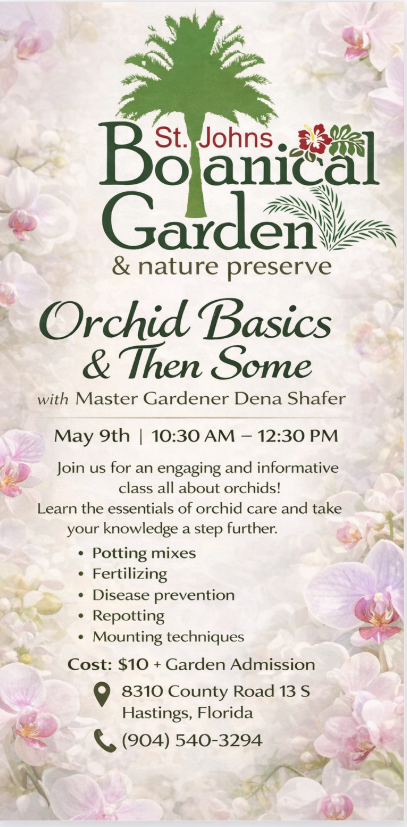 WHERE: St. Johns Botanical Garden, 8310 County Road 13 S., Hastings, FL 32145